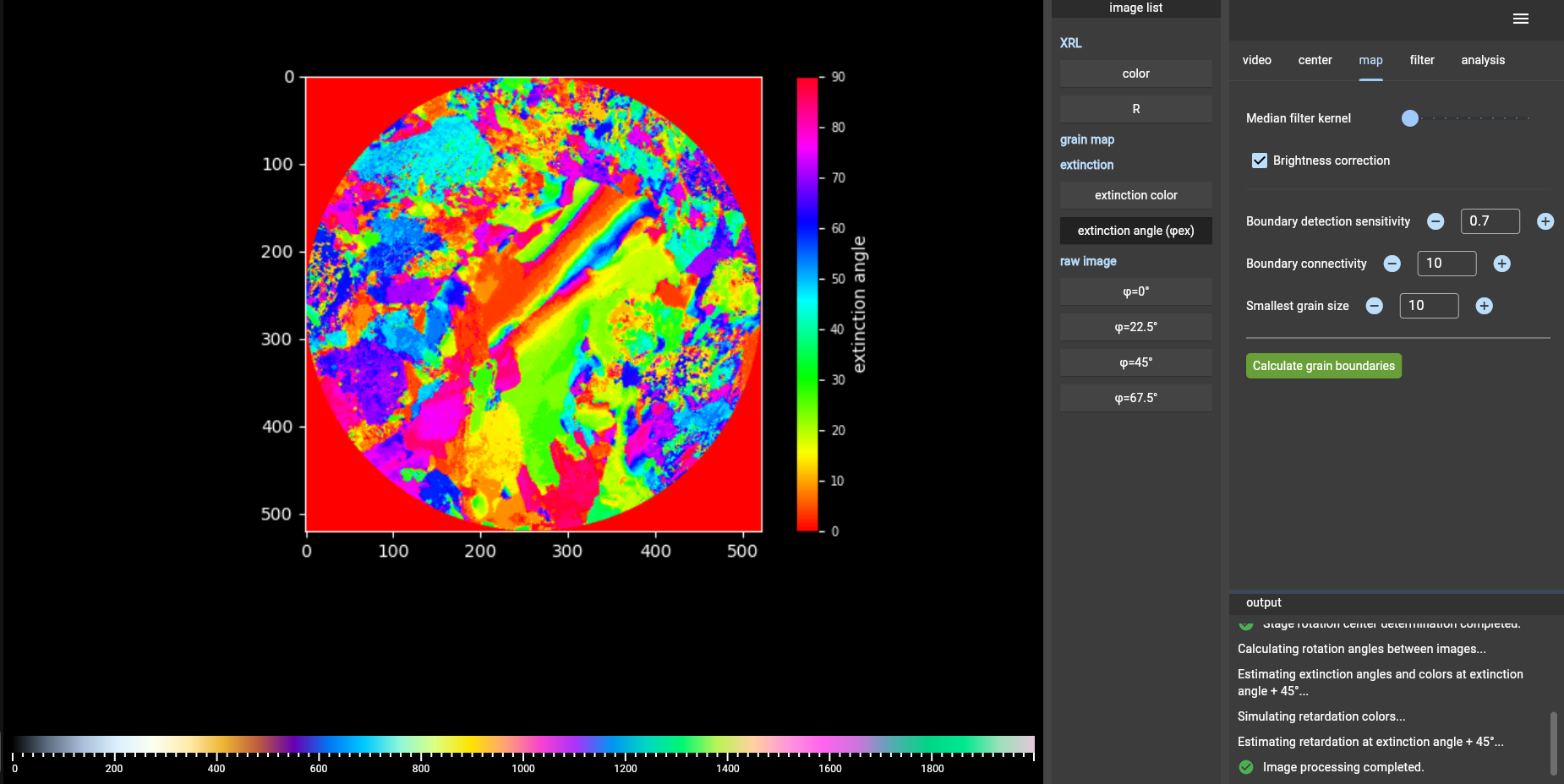 偏光顕微鏡でステージを360°連続回転させながらクロスニコルの短い動画を撮影し、その動画から自動的に
