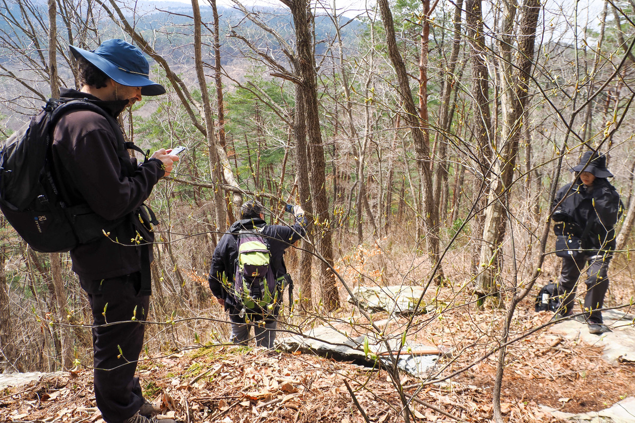 私の研究に関連して、蓮華帯の変成岩(ローソン石青色片岩およびそれに伴う大理石)の露頭の観察を行いました。昨年も同じ場所を訪れていたものの、時期が異なるため、植生や岩石の見え方など、景観がやや異なって感じられました。そのため、前回とはまた違った視点で、より詳細に産状の確認や試料採取を行うことができました。